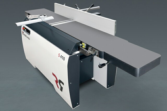 ※Robland手押カンナ盤 robland S410仕様 (手押カンナ盤) モータ 三相200-230V, 5HP 刃数 4 最大切削幅 410mm 最大切削深さ 4mm テーブル長さ 2360mm フェンス 200×1350mm 重量 475kg 商 品(アクセサリ) テルサカッターブロック スパイラルカッターヘッド SUVA matic ※上記アクセサリの価格は機械本体と同時の購入の場合の価格です。
